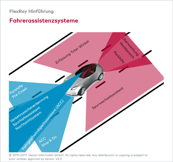 Hinter diesen ganzen aktiven Sicherheits- und Fahrerassistenzsystemen stehen hoch dynamische Regelungsapplikationen, die kaum noch innerhalb eines Steuergerätes geschlossen werden, sondern mithilfe eines Kommunikationssystems über mehrere Steuergeräte hinweg. Nicht mehr autonome Steuergeräte, sondern verteilte Systeme bilden zunehmend das Rückgrat moderner Sicherheits- und Fahrerassistenzsysteme.