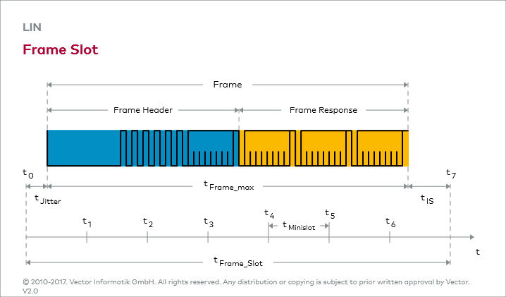 Sobald ein Netzwerk den Betrieb aufnimmt, wird die Master Task im Master gestartet. Dieser beginnt daraufhin mit der zyklischen Abarbeitung der Schedule, mit der das gewünschte Sendeschema abgebildet wird. In der Schedule sind Slots für die einzelnen Botschaften definiert. Diese Slots müssen mindestens so groß sein, dass Frame Header und Frame Response versendet werden können (siehe Grafik Frame). In einem Slot ist immer ein kompletter Frame übertragbar.