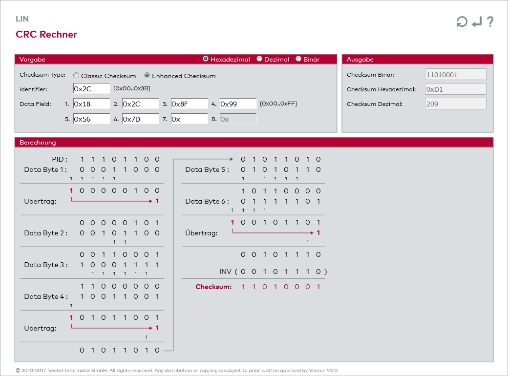 - Checksum = INV (Datenbyte 1 ⊕ Datenbyte 2 ⊕ ... ⊕ Datenbyte 8)