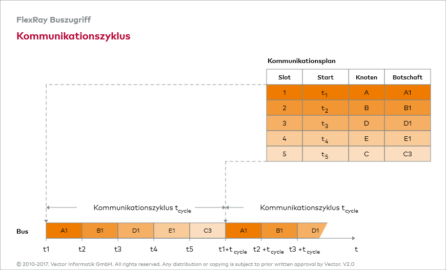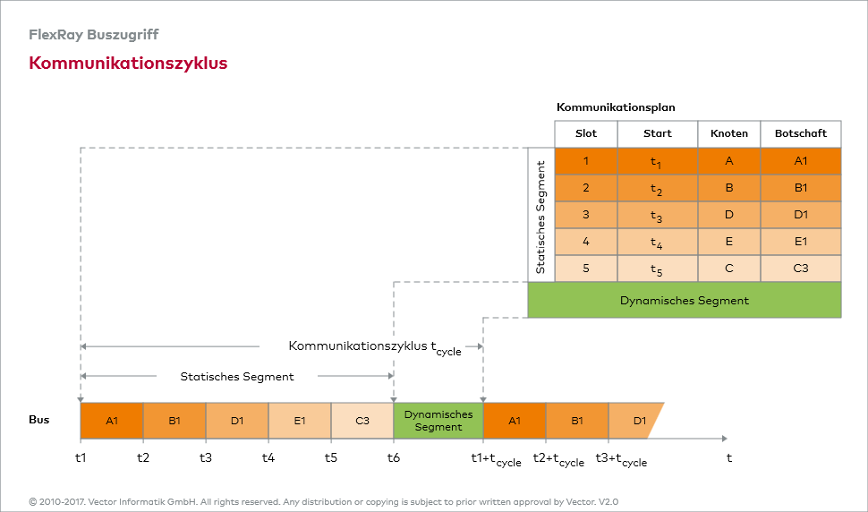 FlexRay Knoten den exklusiven Zugang zum Bus, um die den statischen Slots zugeordneten Botschaften übertragen zu können.