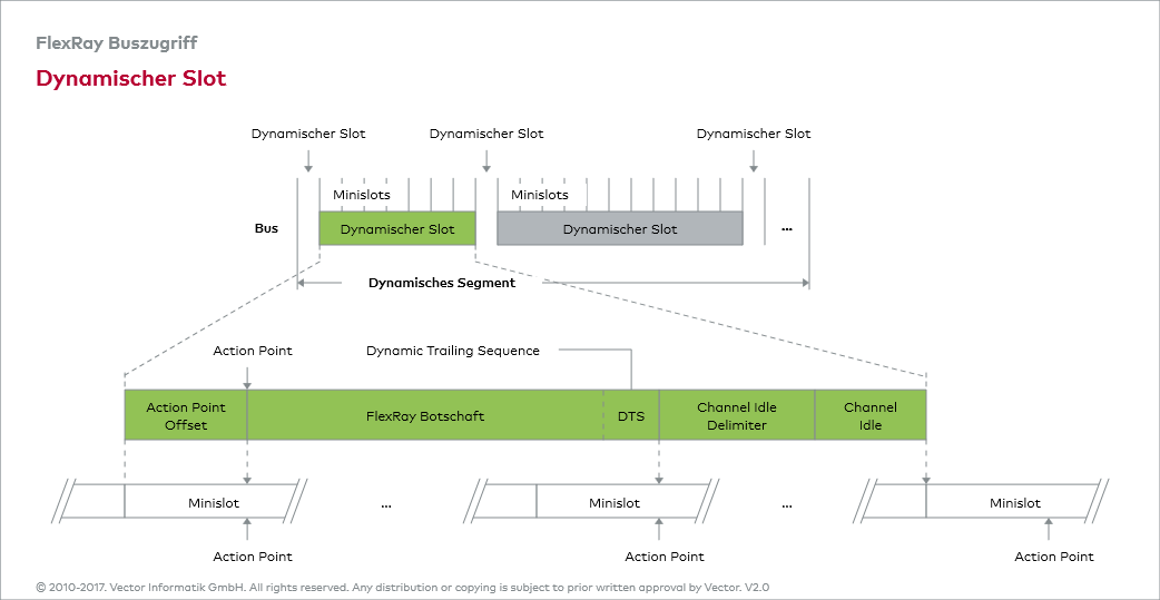 dynamischen Segment Botschaften mit unterschiedlich großem Payload übertragen darf. Der Botschaftsübertragung folgt der Channel Idle Delimiter, der sich wie auch im statischen Slot aus elf rezessiven Bits zusammensetzt.