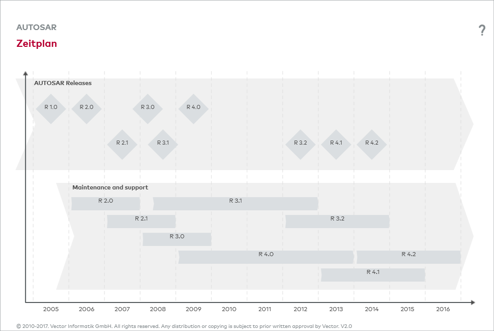 AUTOSAR hat mit der Version 3.0 die erste Version herausgebracht, welche in Seriensteuergeräten zum Einsatz kommt.