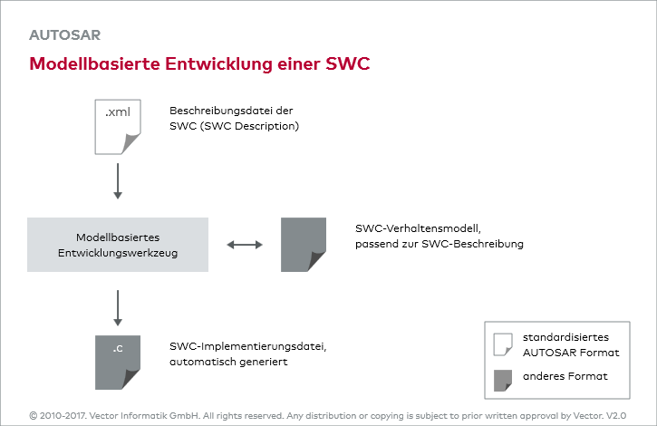 Die Funktionssoftware eines Steuergerätes ist in AUTOSAR über Softwarekomponenten realisiert. Das Kernprinzip besteht darin, eine formale Beschreibung der SWC zu erstellen (SWC Description), aus der sich die C-Schnittstellen der SWC ableiten. Die SWC Description wird in einer XML-Datei in einem von AUTOSAR definierten Schema abgelegt.