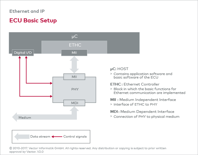 以太网通信的第二层提供用于控制数据传输的重要基本功能,包括统一的报文结构,节点寻址和总线访问方式(bus access method)。所有基本功能在以太网控制器中实现,目前该控制器通常是微控制器的一个组成部分。