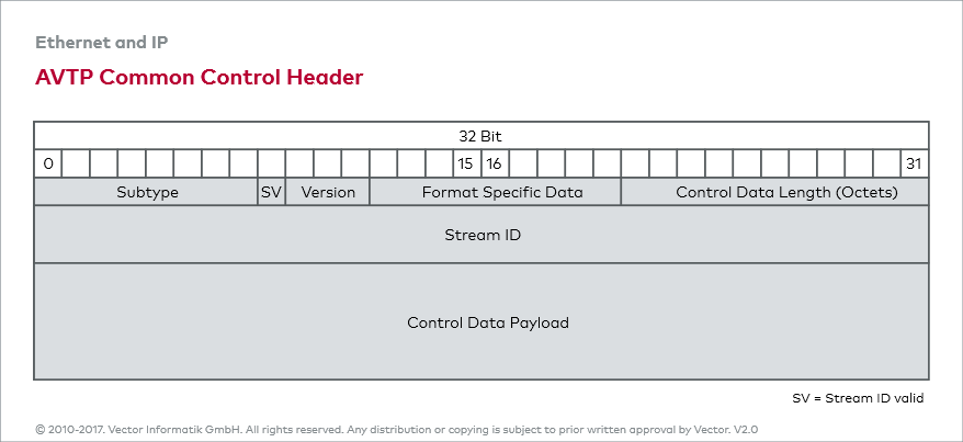 音视频传输协议(AVTP)在其有效负载区域传输数据,通常是视频,音频或控制数据。如果传输的是流媒体数据(音频/视频),那么AVTP 报头中始终会包含一个指向未来某一时刻的时间信息。此外,AVTP使用带VLAN标签的以太网帧,以便交换机可以对数据进行优先级排序。 AVB/TSN提出的另一个质量要求是低延迟抖动,Talker 和Listener 之间的延迟小于2ms。