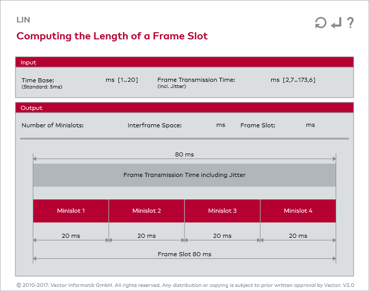如果系统设计人员正确计算了所有帧的时隙,则通信进行期间不会发生冲突。每个时隙必须大到能够保证传输相关的帧(参见交互图:Computing the Length of a Frame Slot)。由于通常使用价格便宜但功能较弱的处理器,因此节点最多可预留40%的时间来保证报文传输。