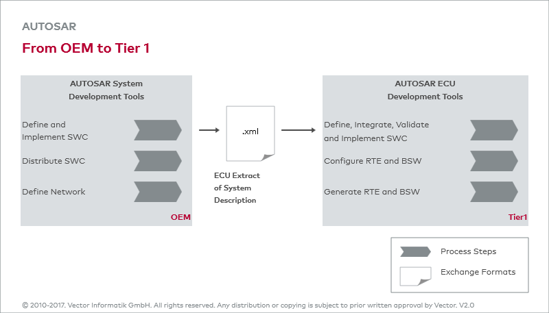 在向AUTOSAR过渡期间,可能并非所有参与者都仅使用AUTOSAR方法。因此,供应商可能会从整车厂接收到.dbc、.ldf或FIBEX数据库,并基于此数据库来生成ECUC。