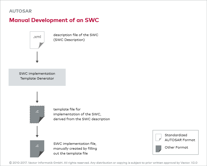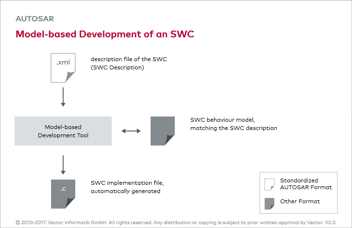 为在实际开发过程中实现复用和接口兼容, SWC功能的正确至关重要。由于明确定义了SWC的接口,因此可以对SWC执行测试,例如单元测试。这样可以开发一个独立于其他SWC的SWC,然后将其作为经过全面测试的单元存放在库中,甚至可以将SWC作为COTS组件提供。