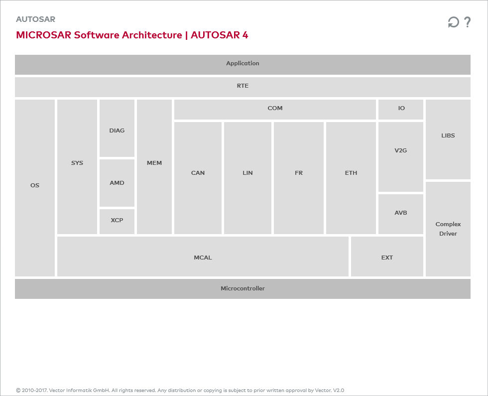 右侧的软件架构图是Vector对AUTOSAR标准的实现,即MICROSAR。