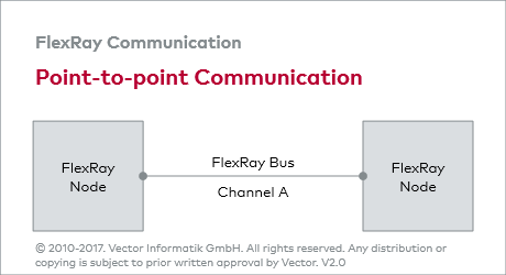 如果使用总线型拓扑,根据FlexRay规范,当FlexRay簇的通信通道的数据传输速率为10 Mbit/s时,任意两个FlexRay节点之间的最大距离不得超过24米。如果数据传输速率降低,则彼此相距最远的两个FlexRay节点之间的最大距离可以增大。根据FlexRay规范,一条线路最多连接22个FlexRay节点。