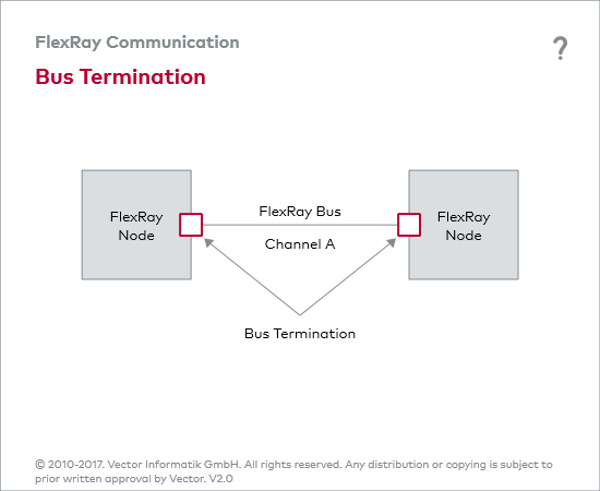 由于信号传播速度有限,反射现象的影响会随着数据传输速率和总线长度的增加而增强。在通信通道的末端设置终端电阻可防止FlexRay簇中发生反射。