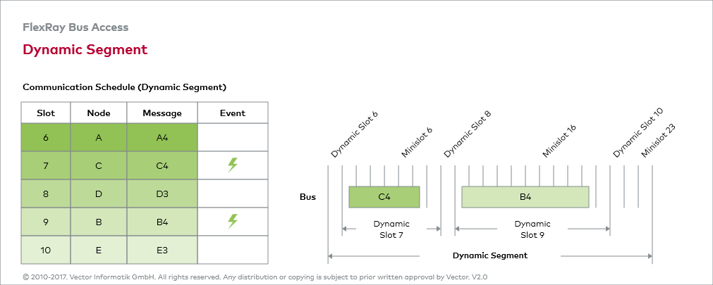 此过程不断重复,直到动态段的长度不足以传输动态报文为止。由于动态段剩余长度太短,因此直到动态段结束的时间内都不会有数据传输。尚未传输的动态报文将在下一个周期的动态段继续传输。您可以通过课程下方的交互图更好地了解动态段中的数据传输。请阅读说明,以便您可以充分利用其全部功能。